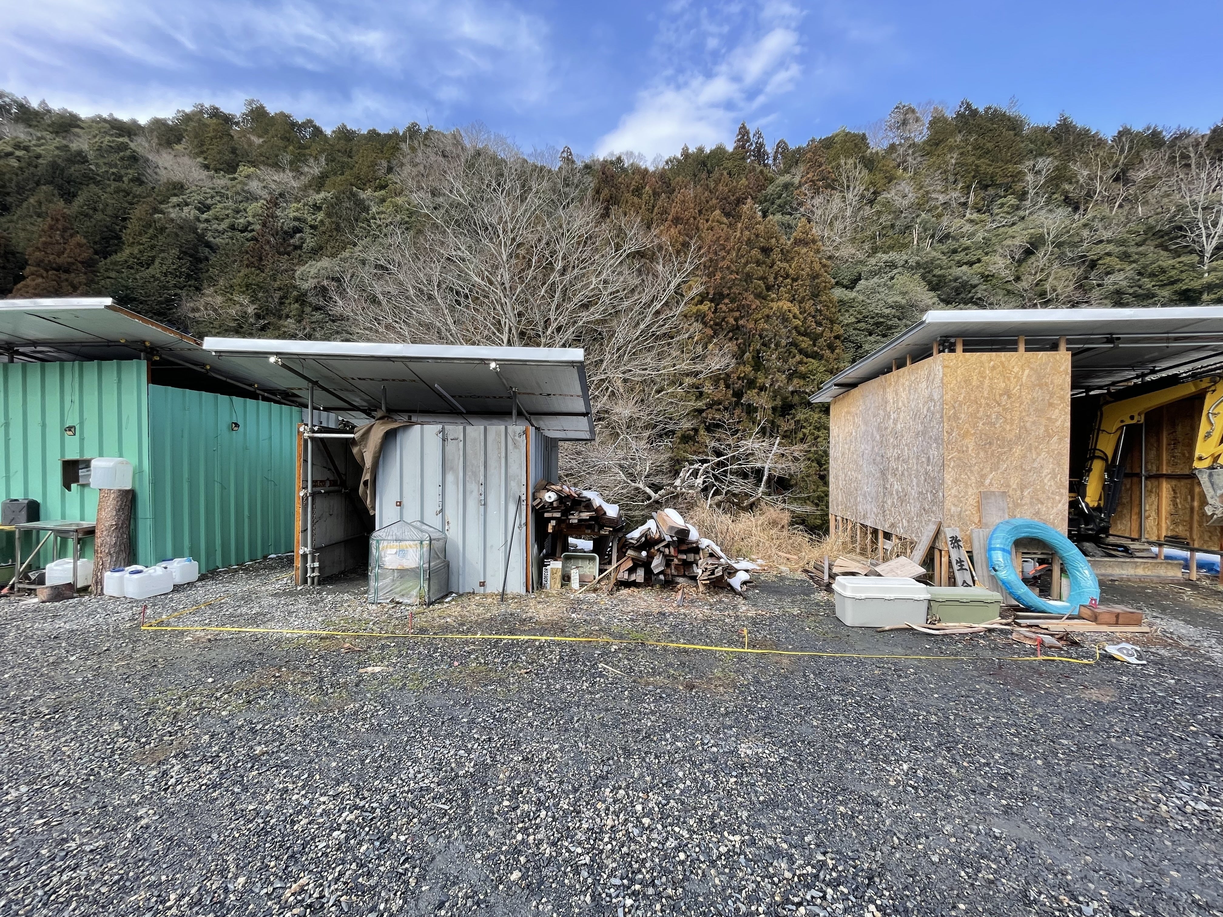 この真ん中の小屋を解体してコンテナを設置します