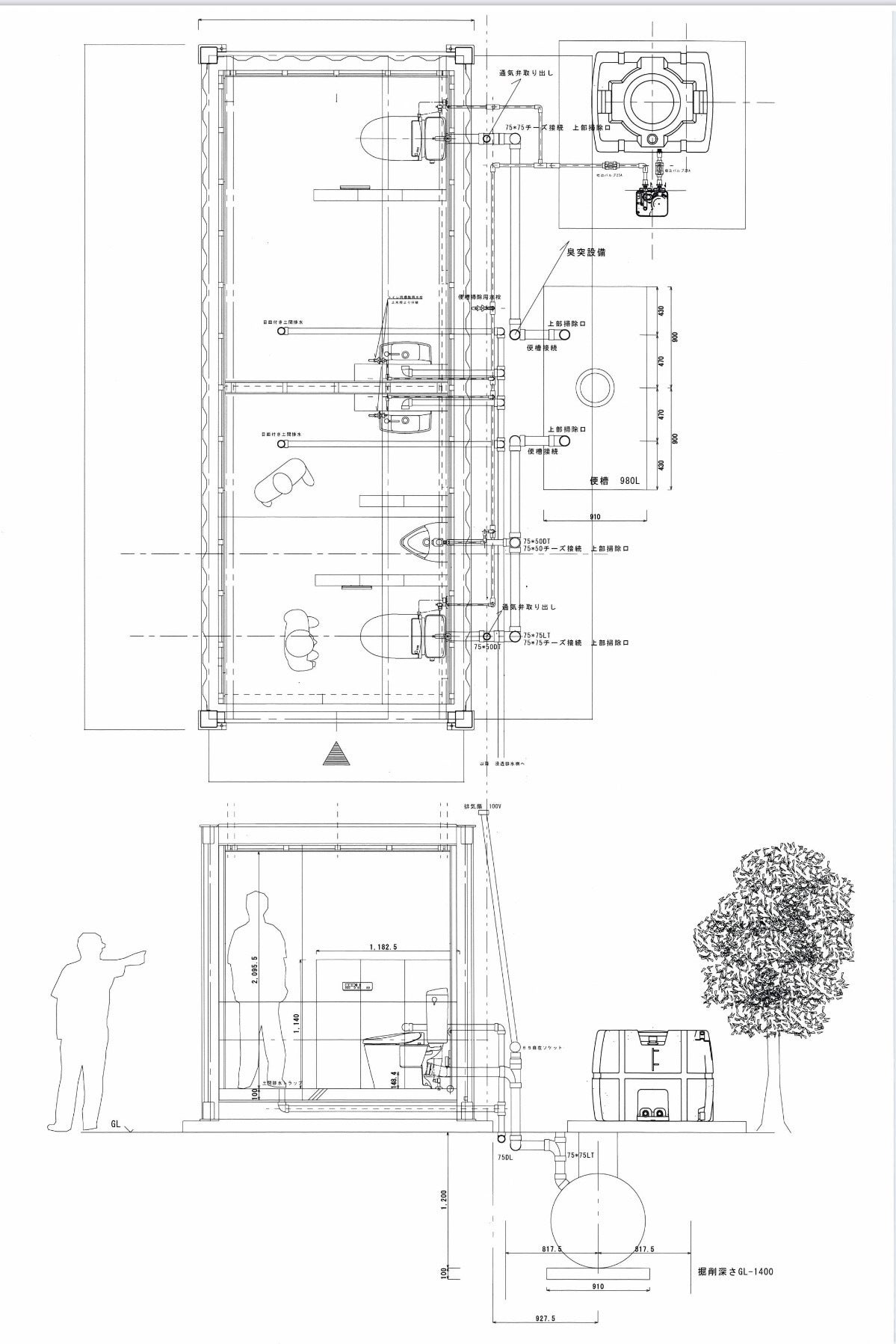 それは現実的に無理だと判断して20フィートコンテナ1機をトイレにする事にしました。