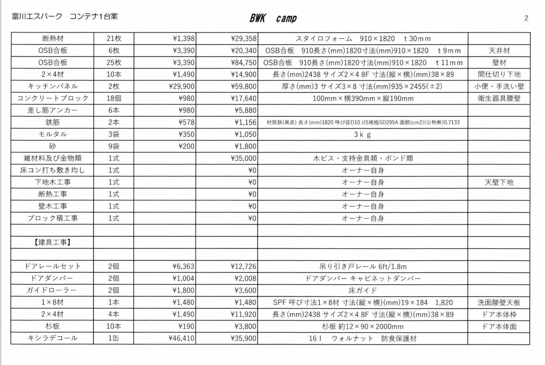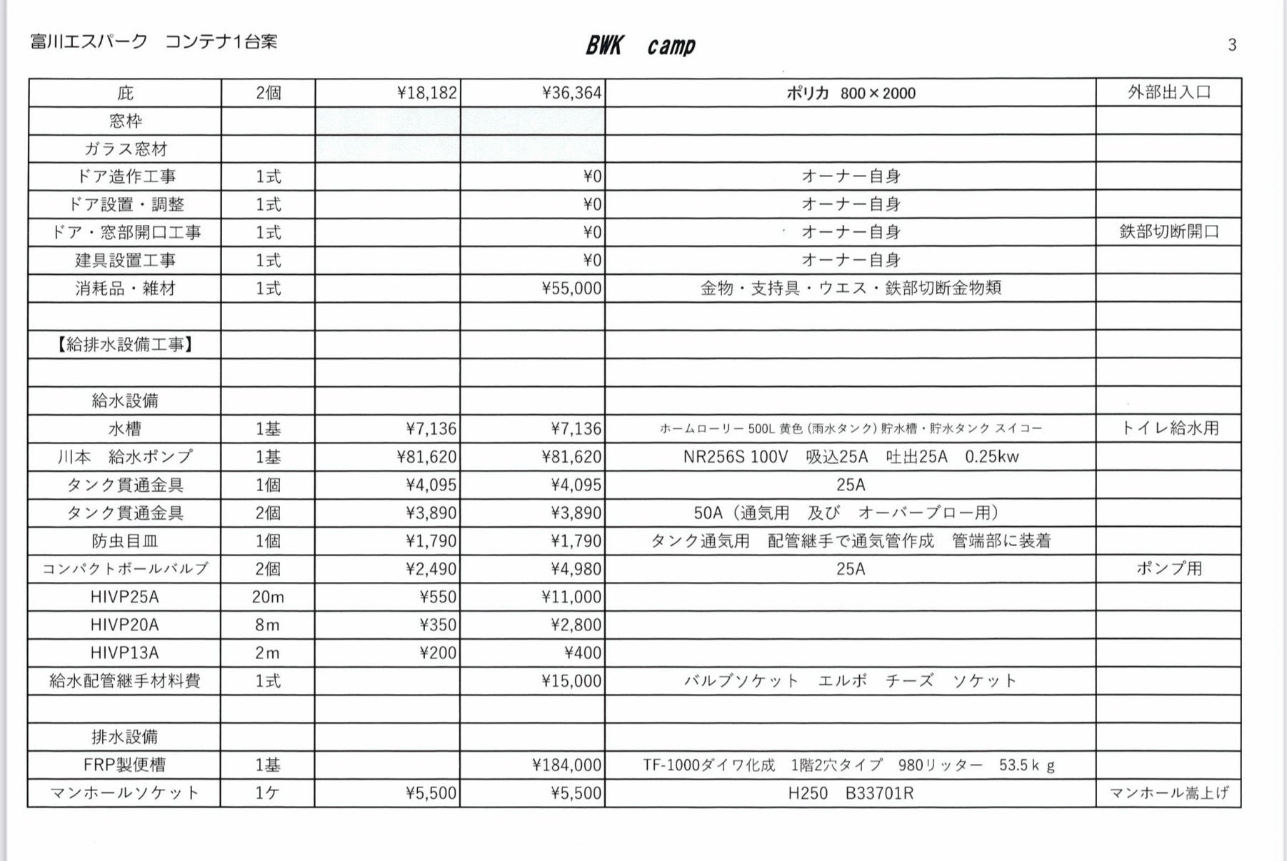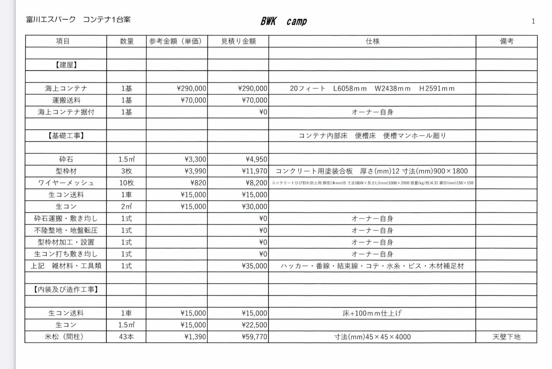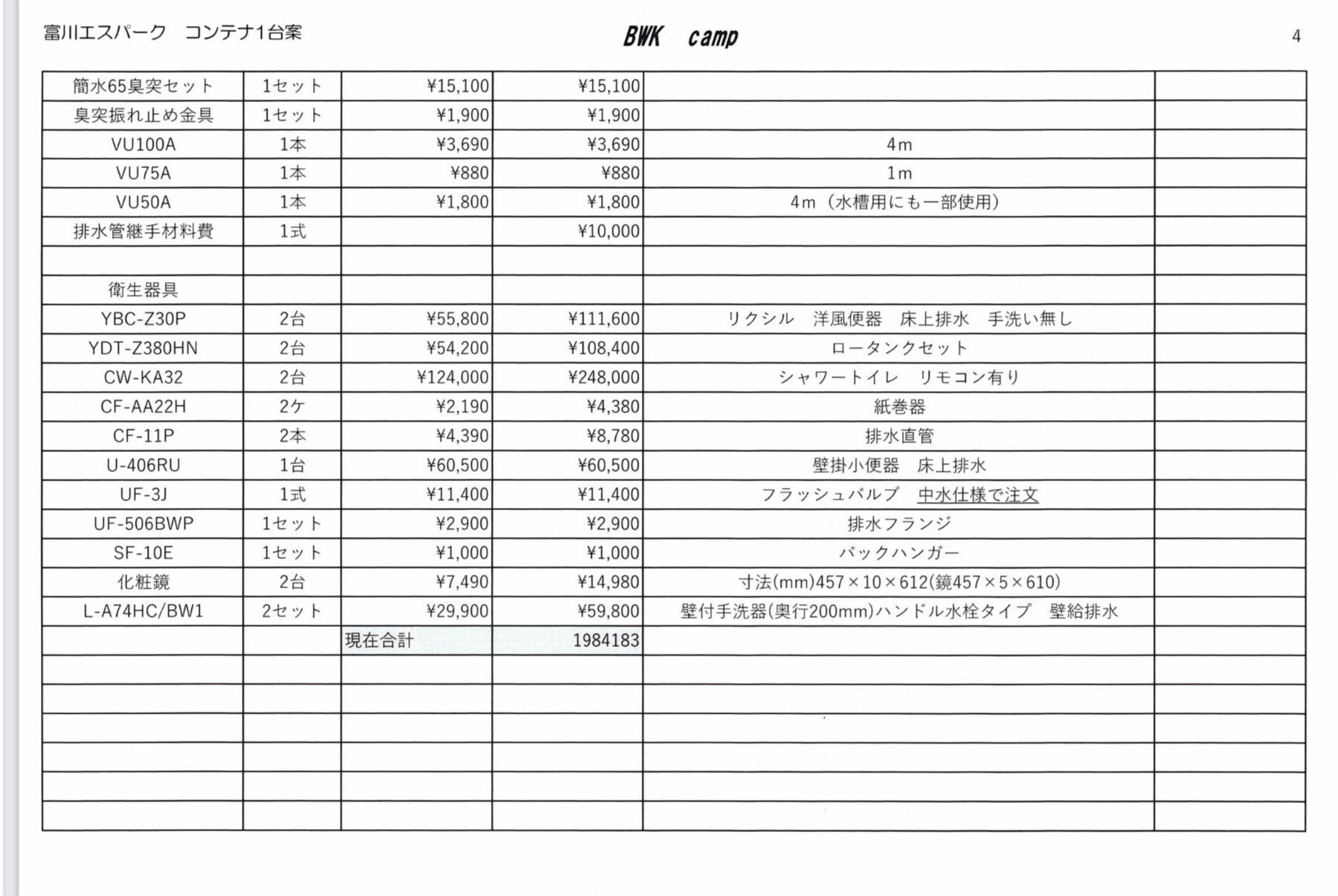 理想ではコンテナを2機設置して男女別棟でお子様と一緒に入ってもゆっくり出来るように広々としたトイレにしたいのですが、材料費だけでも350万円程かかります。