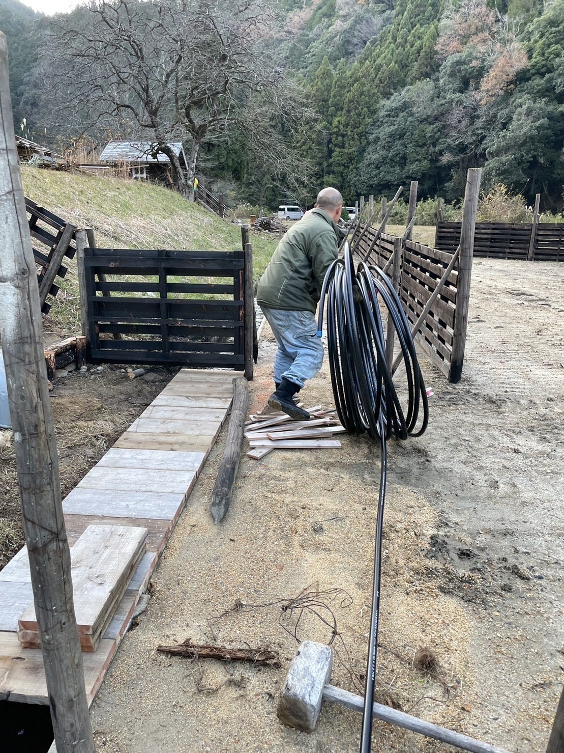 それにはまず水の確保をしないとダメなので、地域の方や山の地主さんなどに相談して山の水をホースで引いて来て、なんとか水を確保する事が出来ました。