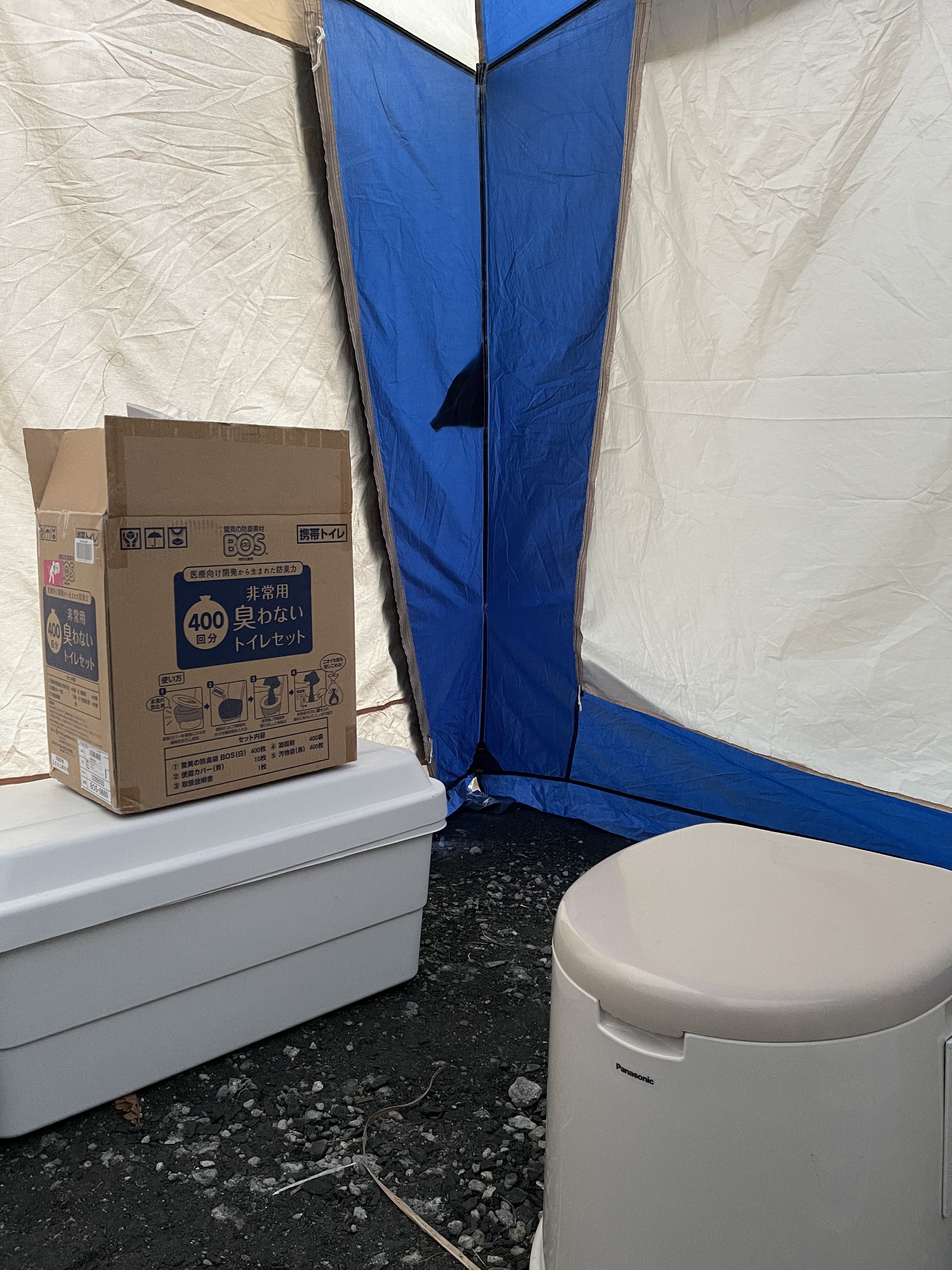 テントの中に非常用トイレを置いてるだけのトイレでした。
