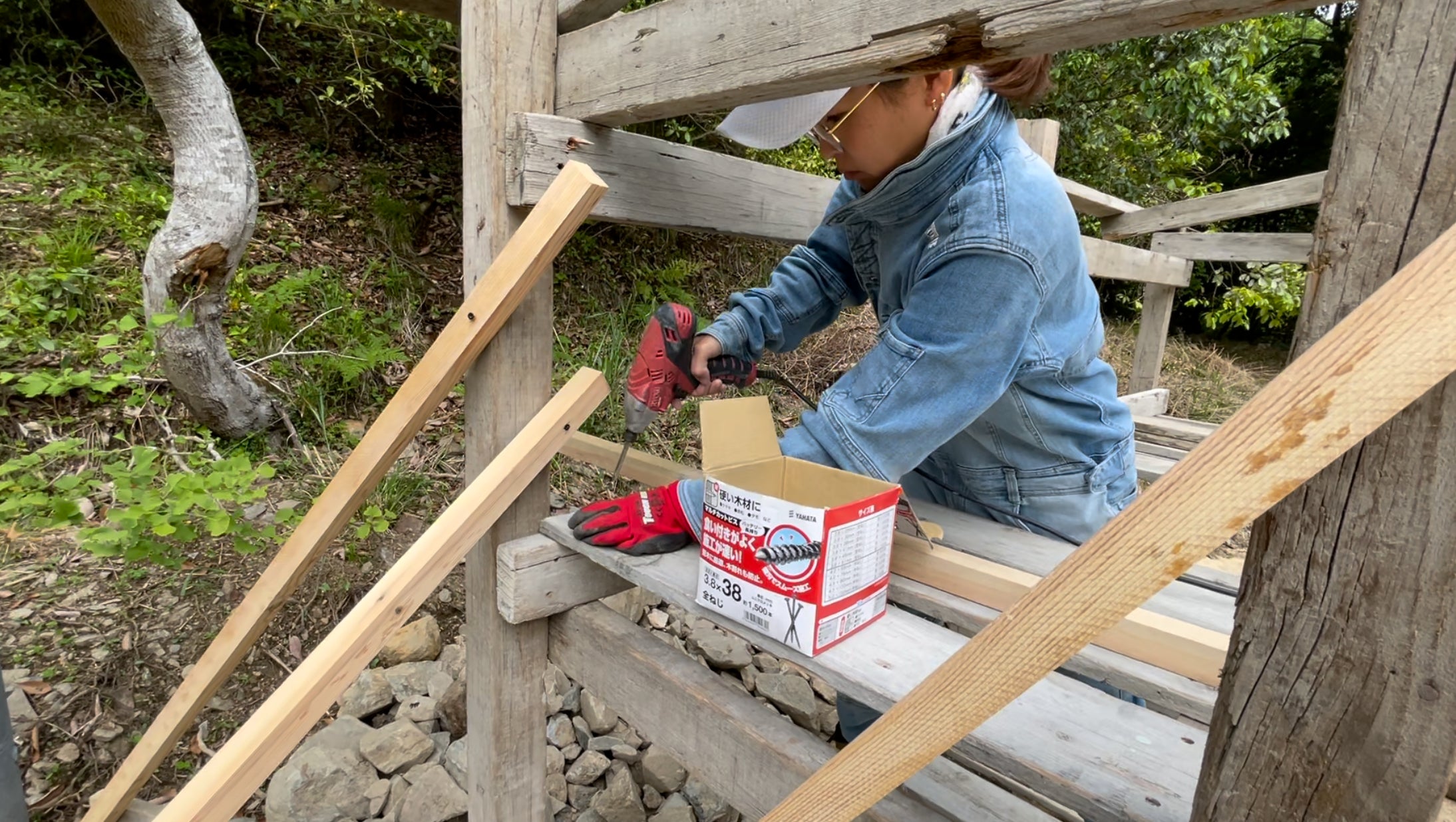 薪棚などもメンバーさんと作りました