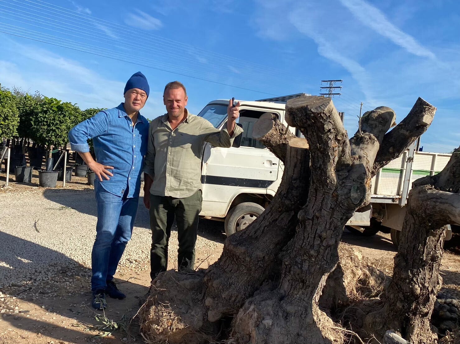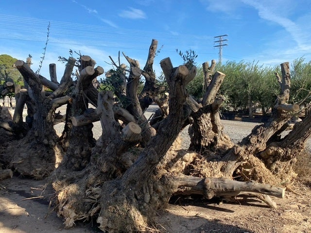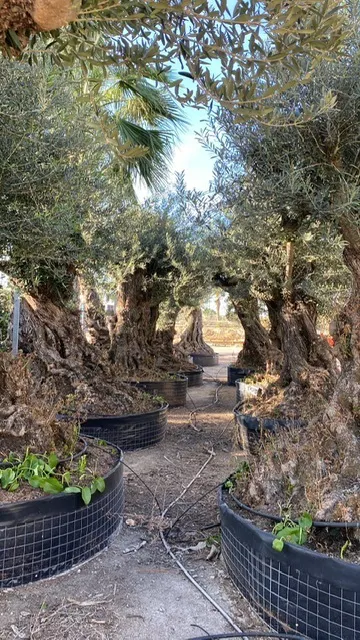 A)コートダジュールのシンボルでもあるオリーブの木。スペインから樹齢約100年と150年のオリーブの古木をご用意しました。