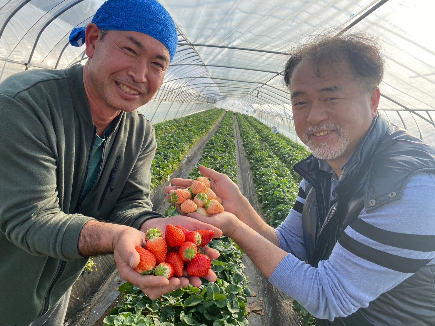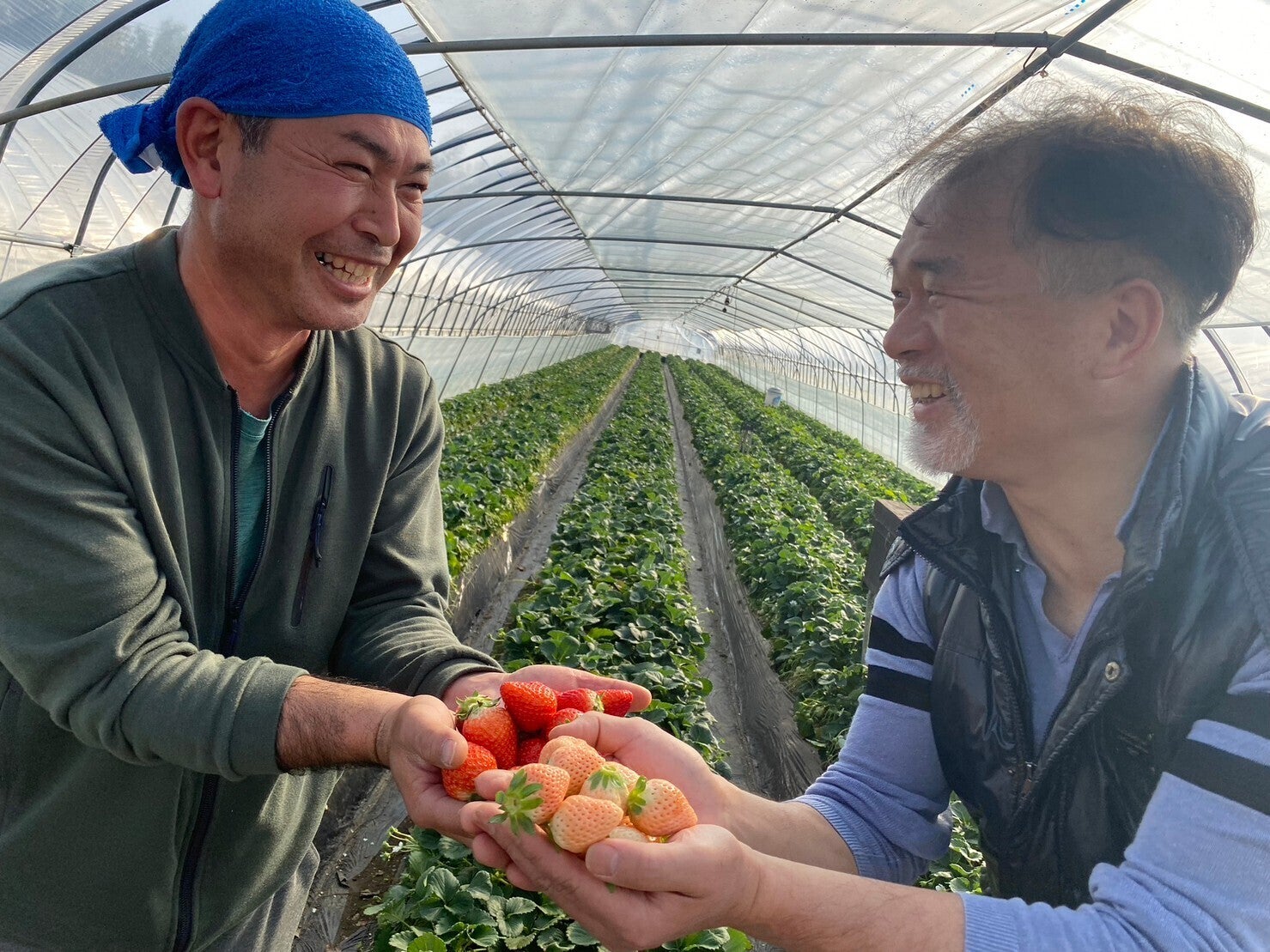 つやつやピカピカの摘みたての苺をいただいて