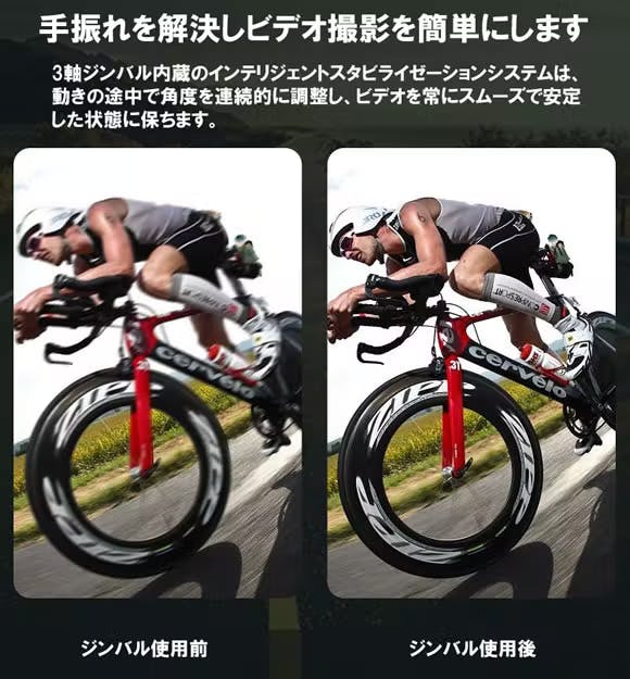 この商品は、歩行時や走行時でも映画のような滑らかな映像を撮影することができます!