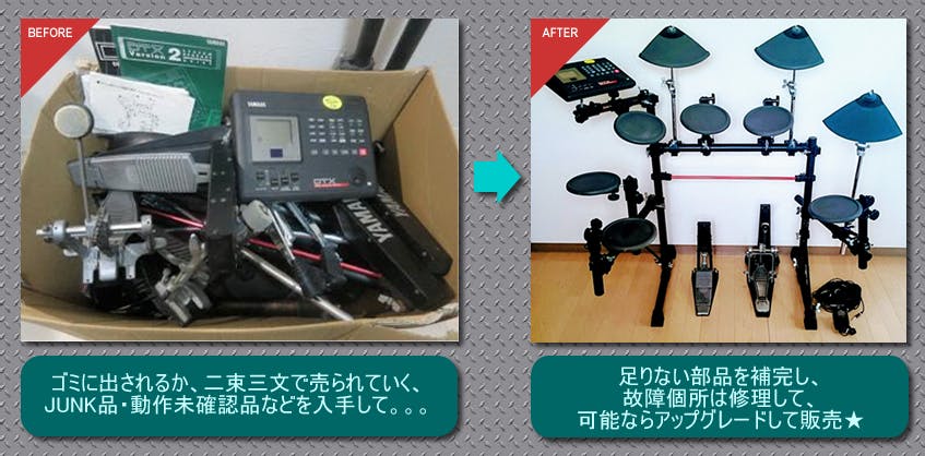 支援金は主に、販売用中古電子ドラム買取りの「元手」として使用させて頂きます。