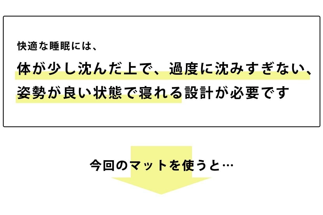 ちなみに家庭用の一般的なマットレスでも6〜18cmで販売されており、10cm程度あれば、身体が大きい方でも底つき感を感じることなく、心地よく眠ることができます。