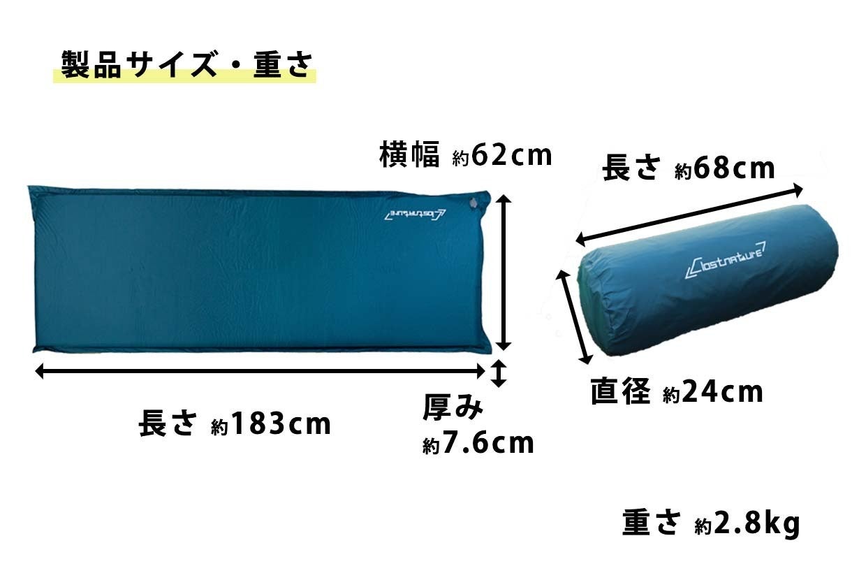 マットの長さは183cmなので、180cm以上の人でマットにすっぽり入りたい人は窮屈かもしれませんが、アメリカでも売れているものなので、日本人の体型でもしっかり支えてくれるはず。