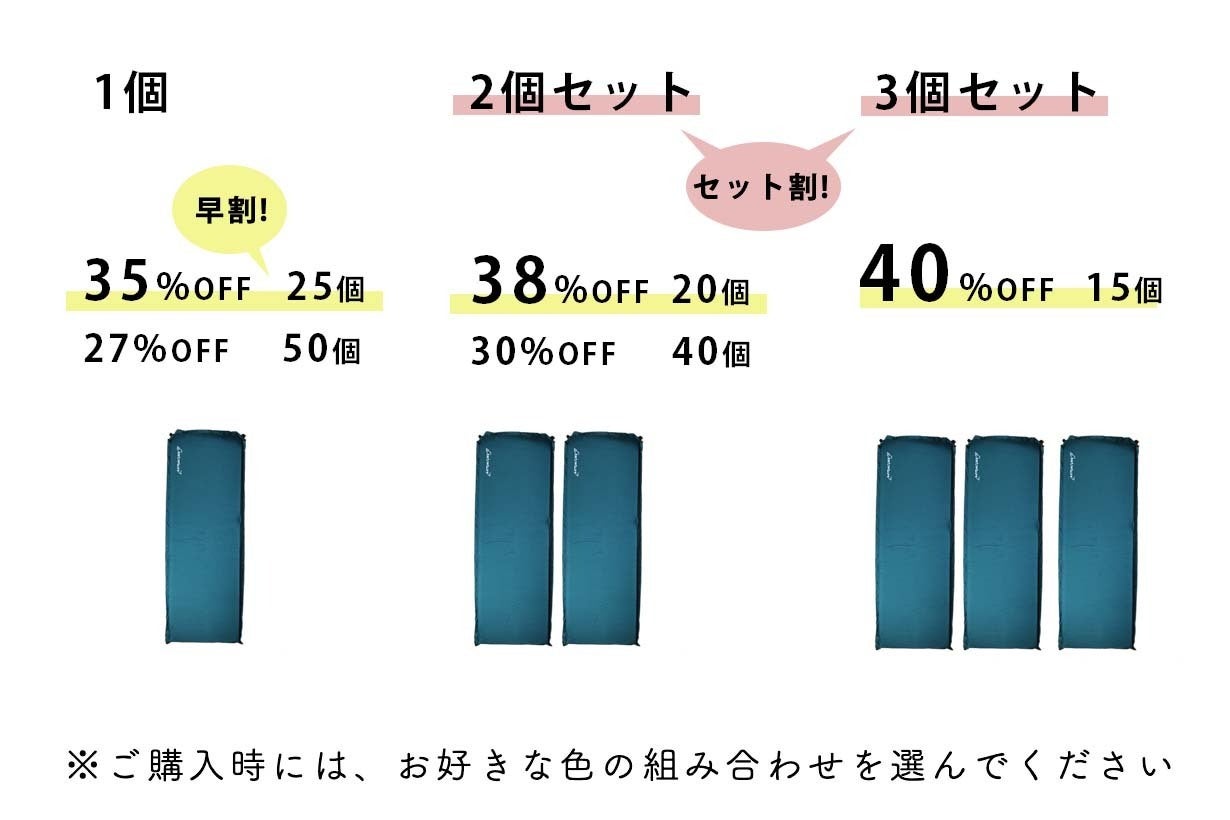 通常の販売予定価格より、最大40%OFFまで【セット割】、【早割】をご用意しております。