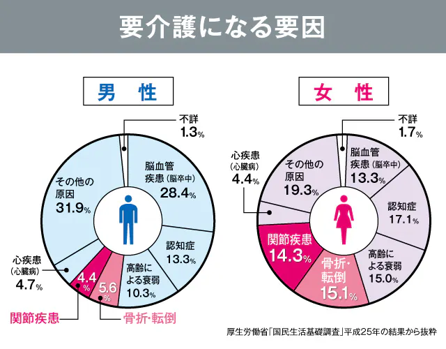 ★関節疾患や骨折・転倒は男女共に「要介護」になる要因の中を占めている…