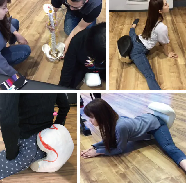 何度も何度も試作ウレタンを削り出し、ウレタン硬度・金型軸を調整し、試用し「開脚ベターBurn+」は生まれました。本品は普段なかなか使われていない股関節周りの筋肉をたくさん使うことが出来る“簡単運動グッズ”です。