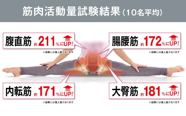 ★「開脚ベターBurn+」を使用した驚きの筋肉使用量結果!