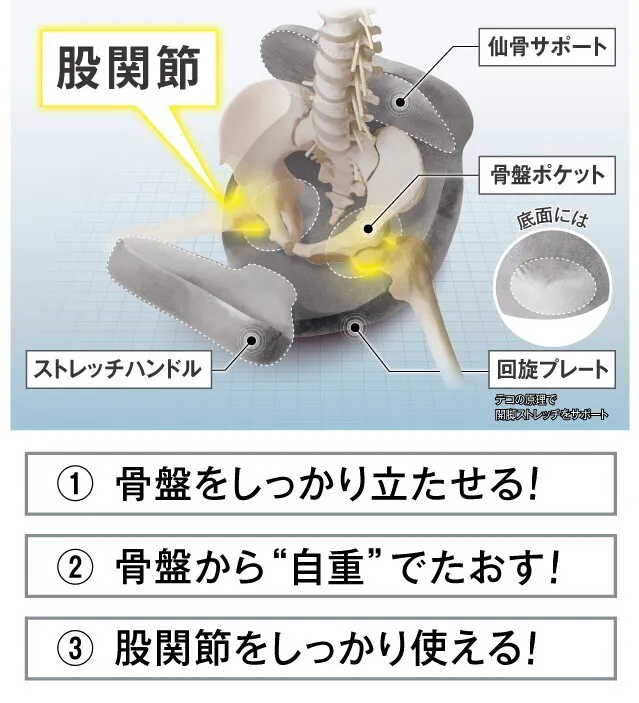 ★「開脚ベターBurn+」なら鼠径部にアプローチしながら“骨盤のゆりかご”のように自重で揺れるだけ!