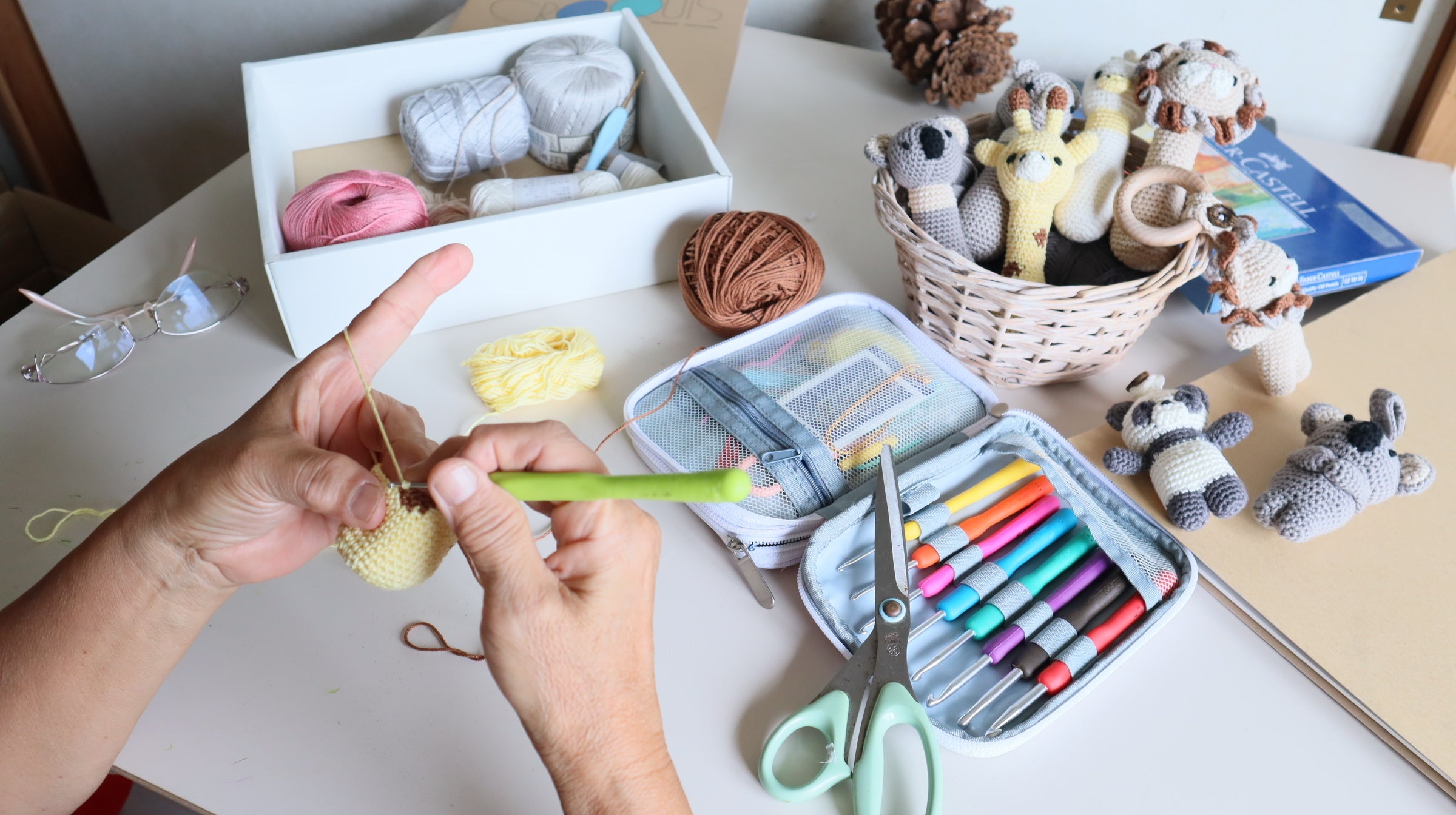ひとつひとつ仕上がっていくたびに、この商品がお客様の手に届くと想像すると嬉しい気持ちになりますし、小さい子供が使う可能性があると思うと、パーツの取り付けや、編み目がほどけないように、と最新の注意を払いながら作っています。