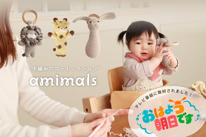 「HOPPL」のものづくりは、生産者の女性たちによる沢山の工夫とこだわりが詰まっています。何度も改良を重ねて、ユーザーとなるママと赤ちゃんの意見を取り入れながら生まれた「amimals(アミマルズ)」のコットンラトルには、完全国内生産だからこそ実現できる生産者の思いが込められた、ぬくもりを感じる、次世代の子どもたちに送りたい心温まるプレゼントのような逸品です。