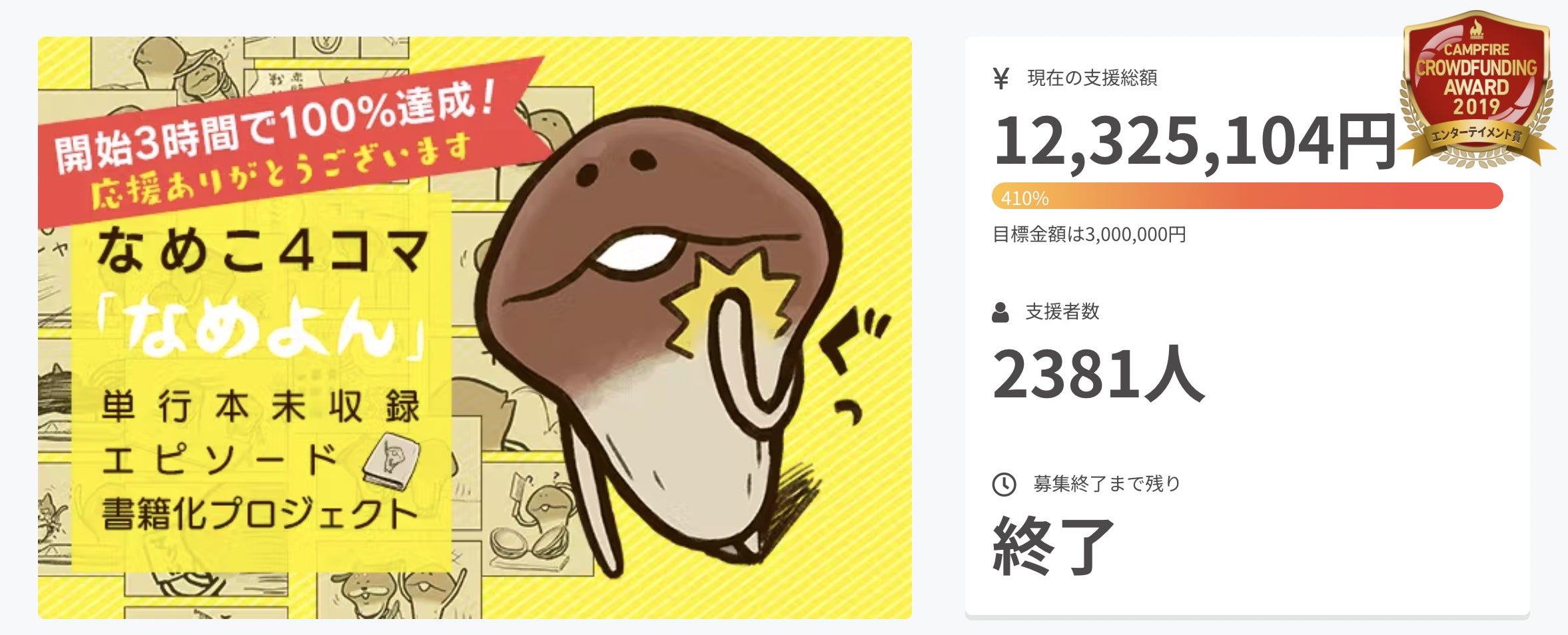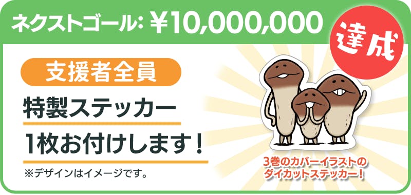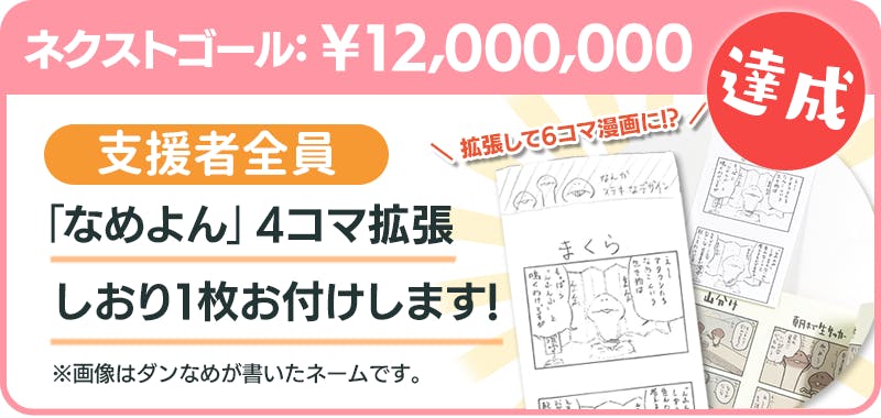 なめよん3巻書籍化クラファンありがとうございます。 周囲には栽培家がおらず寂しい気もしますが、クラファンの度になめこの根強い人気を実感します。 なんとか1000万達成して欲しいですが、リターンの追加予定はないでしょうか? 追加支援したいけど、もうあまり日もないし難しいですかね😣 応援しています!頑張ってください!