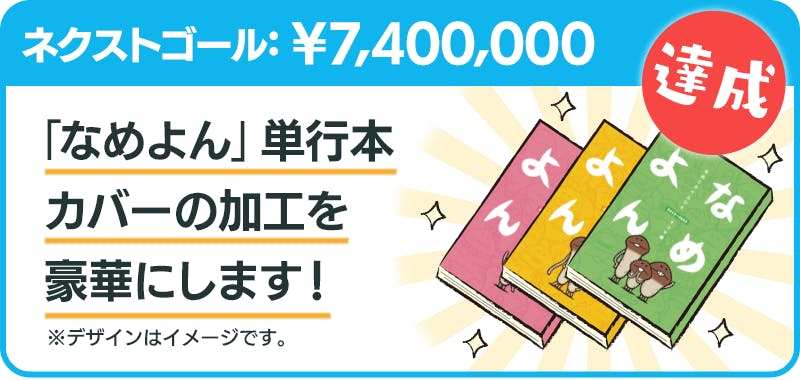 「なめよん」シリーズ新刊と復刊をお届けすることはもちろんですが、なめこを取り巻くすべての人が同じ瞬間を共有できる、それだけでもクラウドファンディングプロジェクトを開催する価値があるのだと思います。