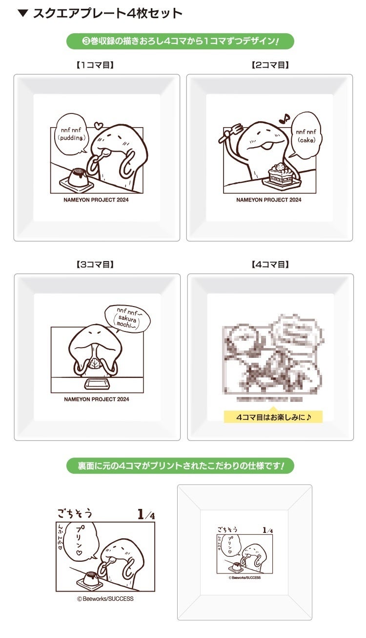 「なめよん③巻」収録予定の描き下ろし4コマを1コマずつデザインしたスクエアプレートです。