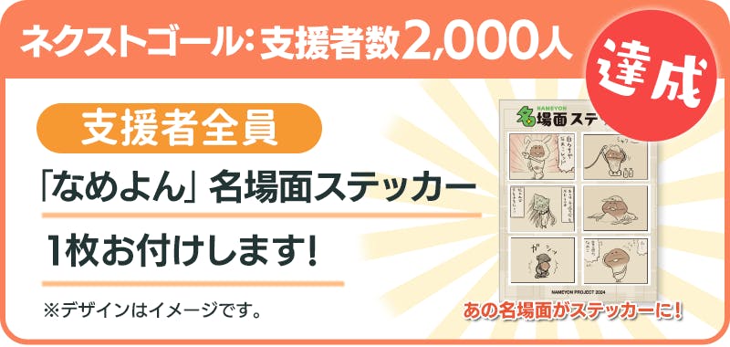 「なめよん③巻」カバーイラストの特製ステッカーを支援者全員にプレゼントします。