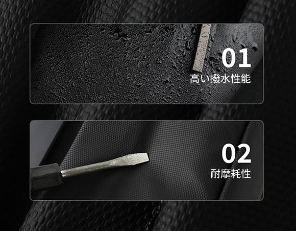 軽量仕様、耐久性の高いポリエステルを採用したうえ、表面をフィルムでコーティングしており、高い光沢と撥水性能を備えています。柔らかく肌触りが快適で、日常やアウトドアシーンにぴったりです。