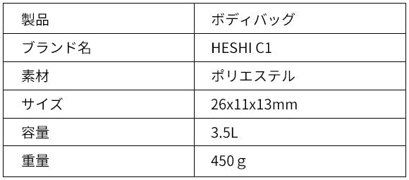 ボディバッグ「HESHI C1」(ヘシ C1)のポイント