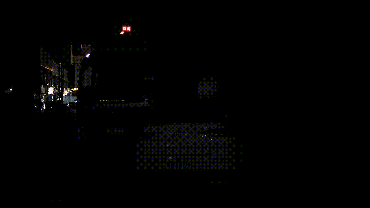 夜間でも前後の車のナンバーや細かい部分まで記録することができます。