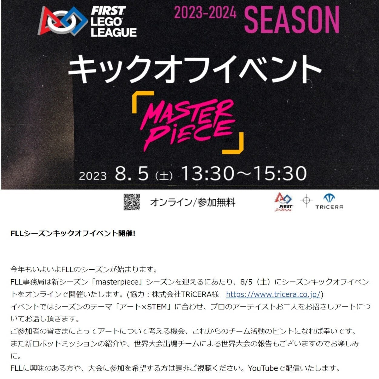 2023/08/04 20:40FLLの新シーズン「MASTER PIECE」シーズンがスタートしました。私たちはもちろん今シーズンも「世界No.1」を目指して挑戦をします。その前に、明日のキックオフイベント内で世界大会報告を行います。TSKYは14時40分ごろ登壇予定です。https://onl.sc/31HtKpTたくさんの方のご参加をお待ちしております。 もっと見る