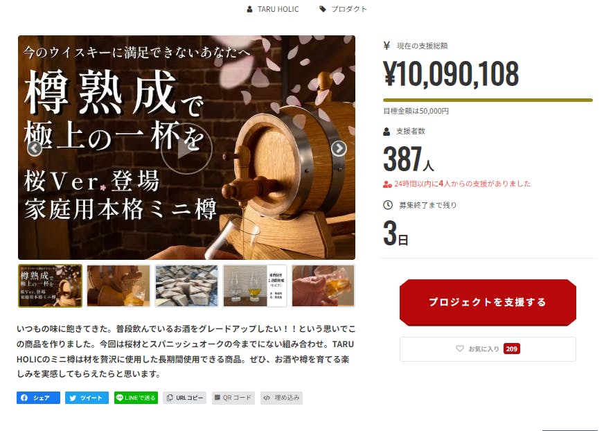 支援総額が1000万円を超える事が出来ました。