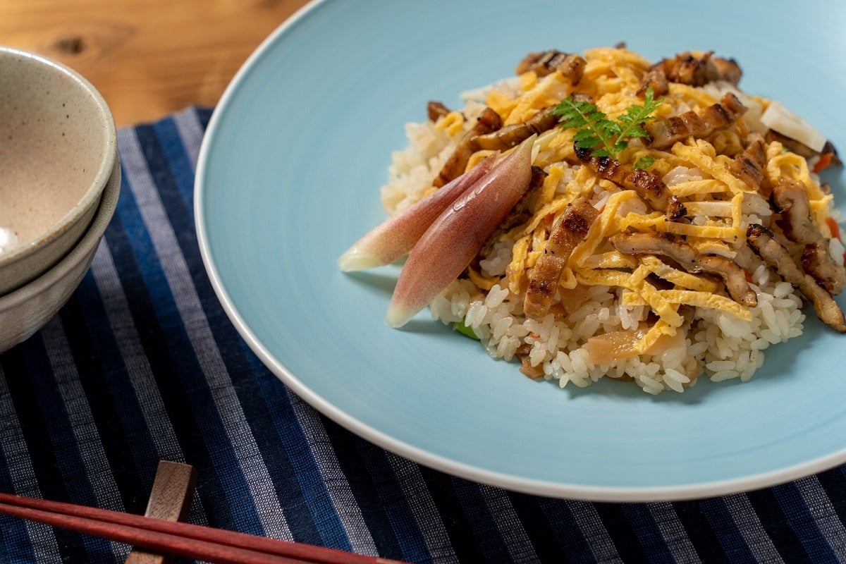 焼あなごとたくあんを刻み、七味、白ごまと混ぜ合わせるだけ。