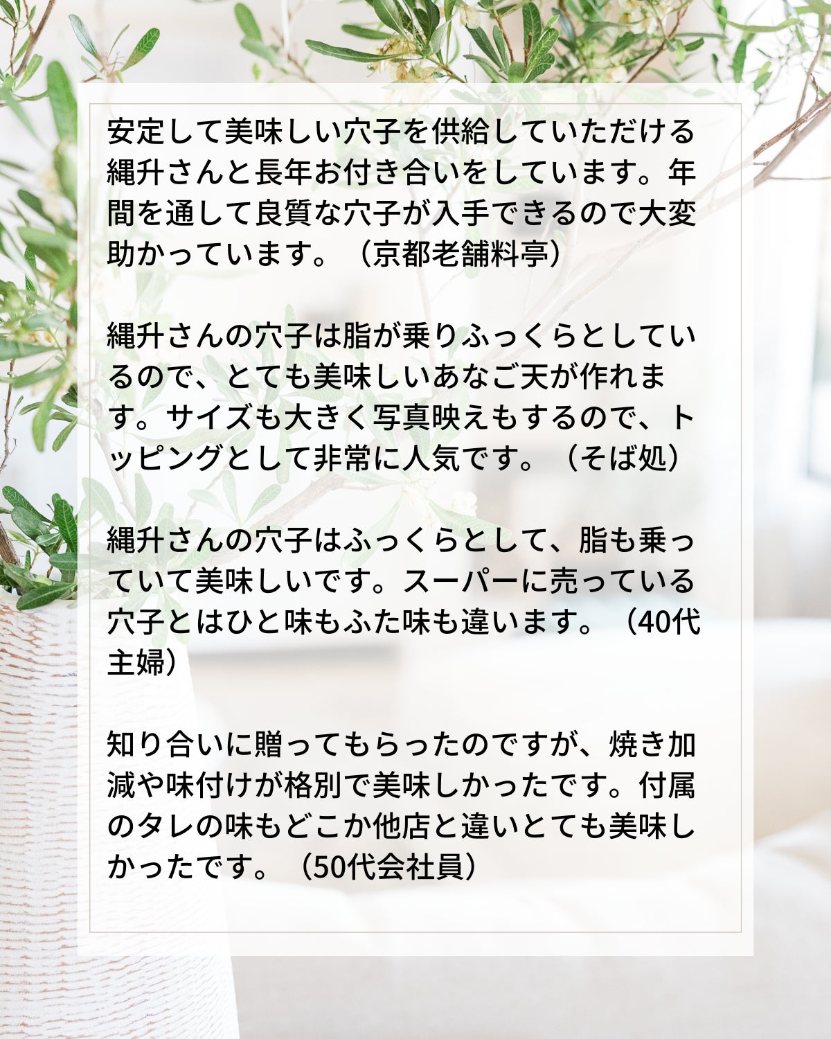 この機会にぜひ、たくさんの方に縄升こだわりのあなごを召し上がっていただきたいと思います。