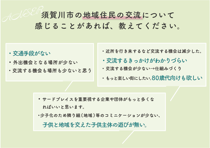 地域住民の皆さまにご協力いただき、須賀川市で暮らす方々の声を聞き、課題の再認識をいたしました。