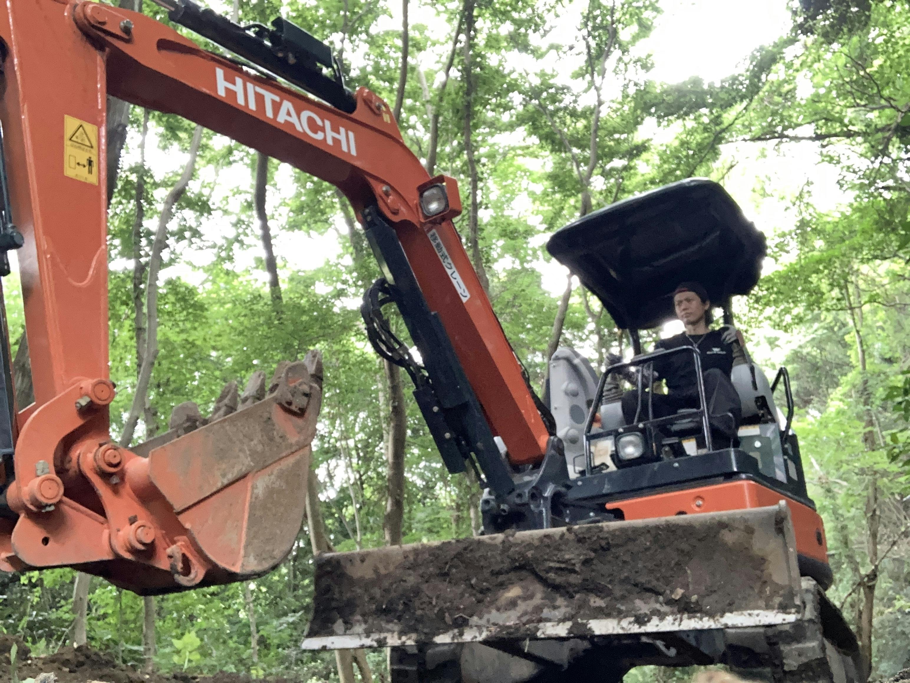 今回舗装工事の主要な部分はプロにお願いする予定なのですが、下準備としてユンボで道の整備作業を行なっています。