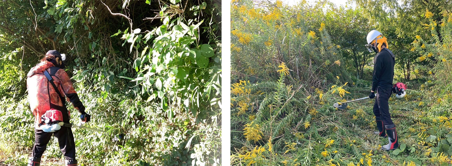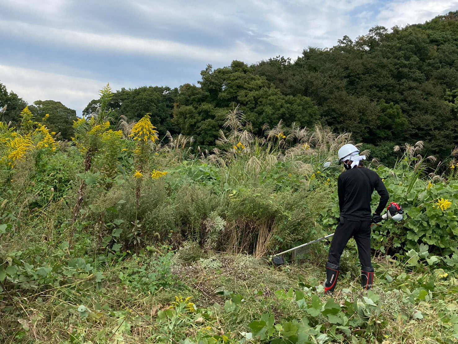 本業の合間に1人購入した山林へ行き、刈払機1台でひたすら草刈り。3m先も見えない荒れ果てた5500坪の山林に来る日も来る日も立ち向かいました笑