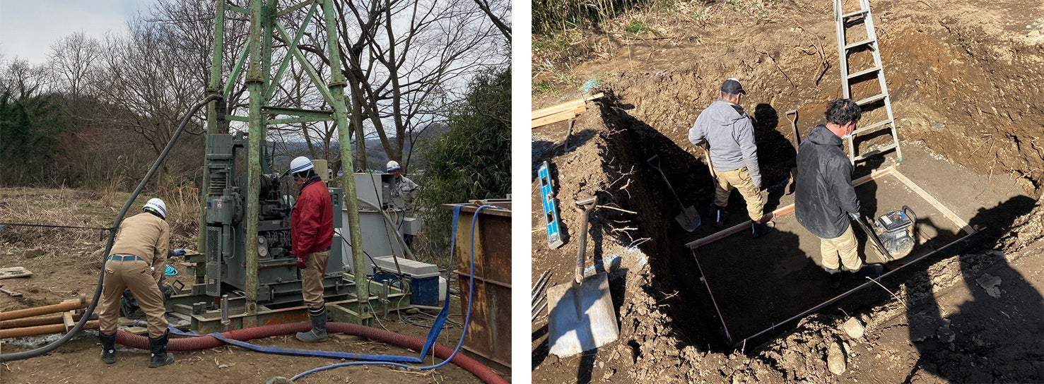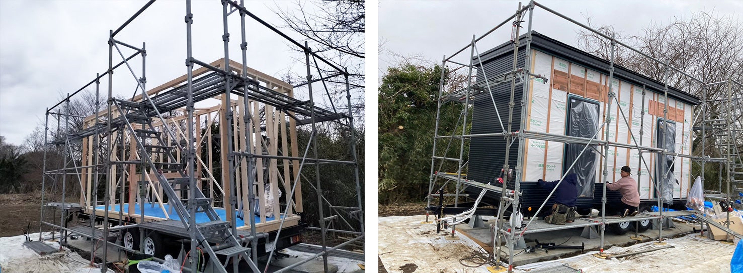 そして本格的なライフライン構築として、井戸の掘削と浄化槽の設置をプロの業者に依頼。更にトレーラーを活用したトイレ棟・管理棟制作にも着手しました。