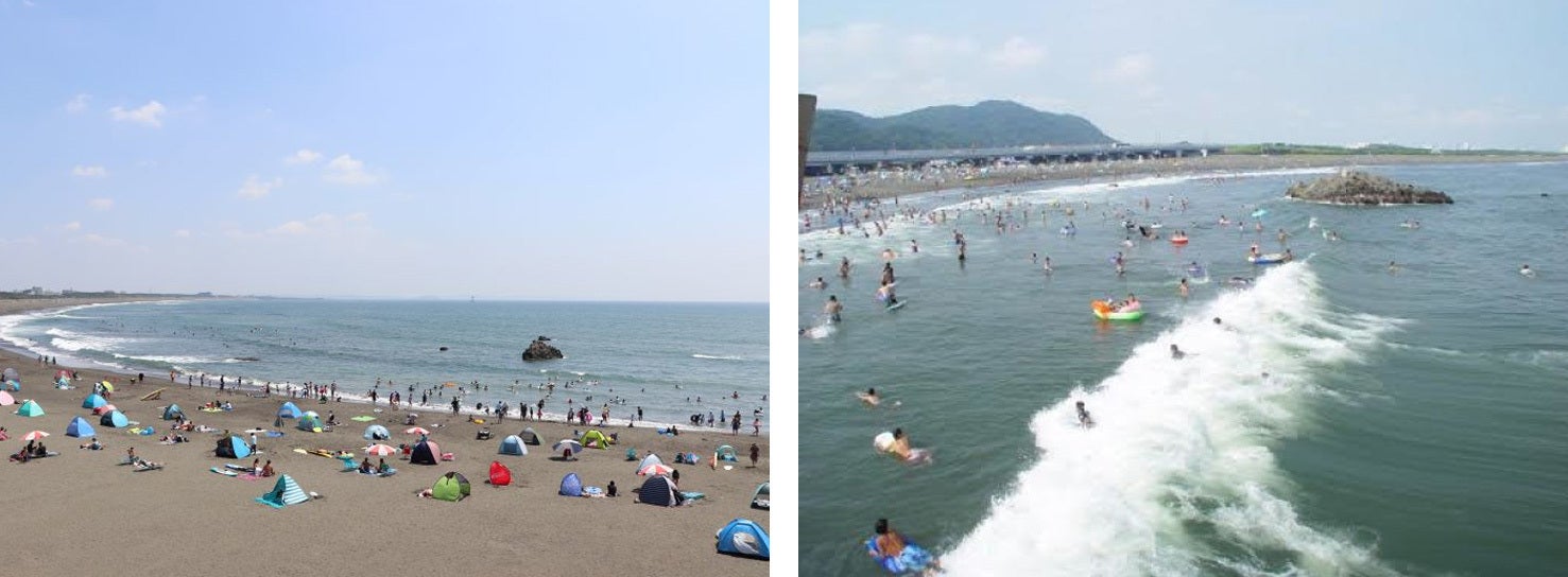 日本で最初に開かれたといわれている歴史のある海水浴場。海岸線から約10メートルの沖合いに浮かぶ「かぶと岩」がシンボルとなっています。遠浅で砂浜がきれいでシーズン中は海水浴客で賑わいます。