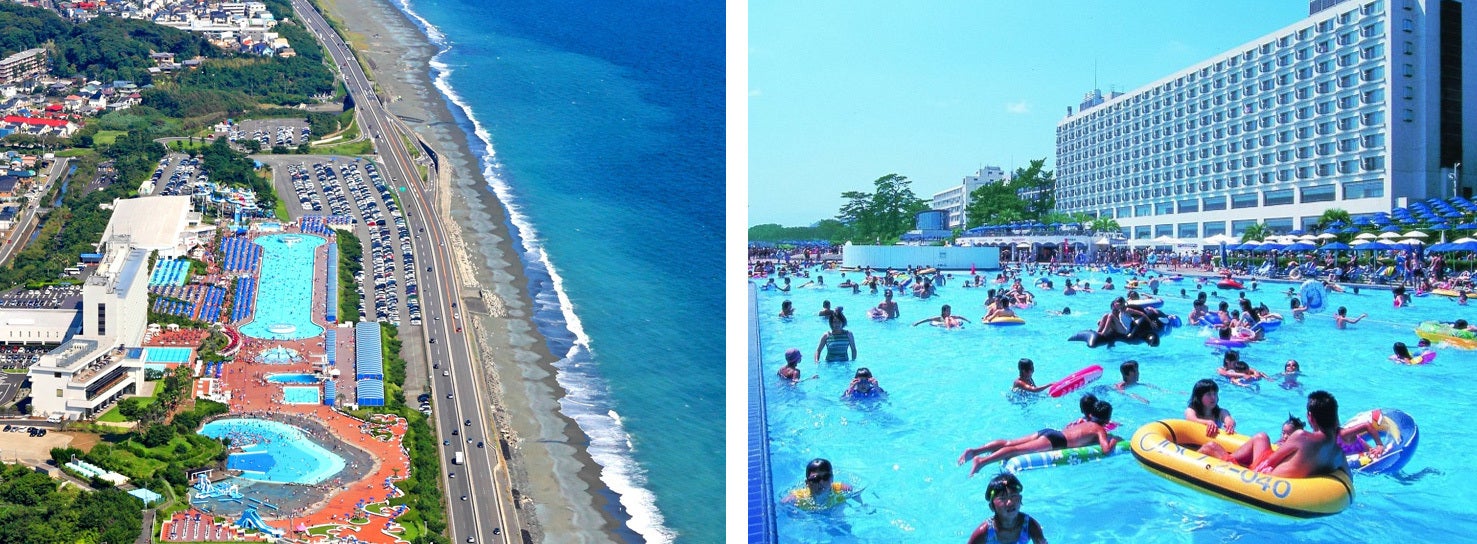 海風と緑に囲まれたシーサイドリゾート。一周500mの流れるプールやウォータースライダー、キッズウォーターパラダイスなど7種のプールが人気。大磯プリンスホテルに併設しています。