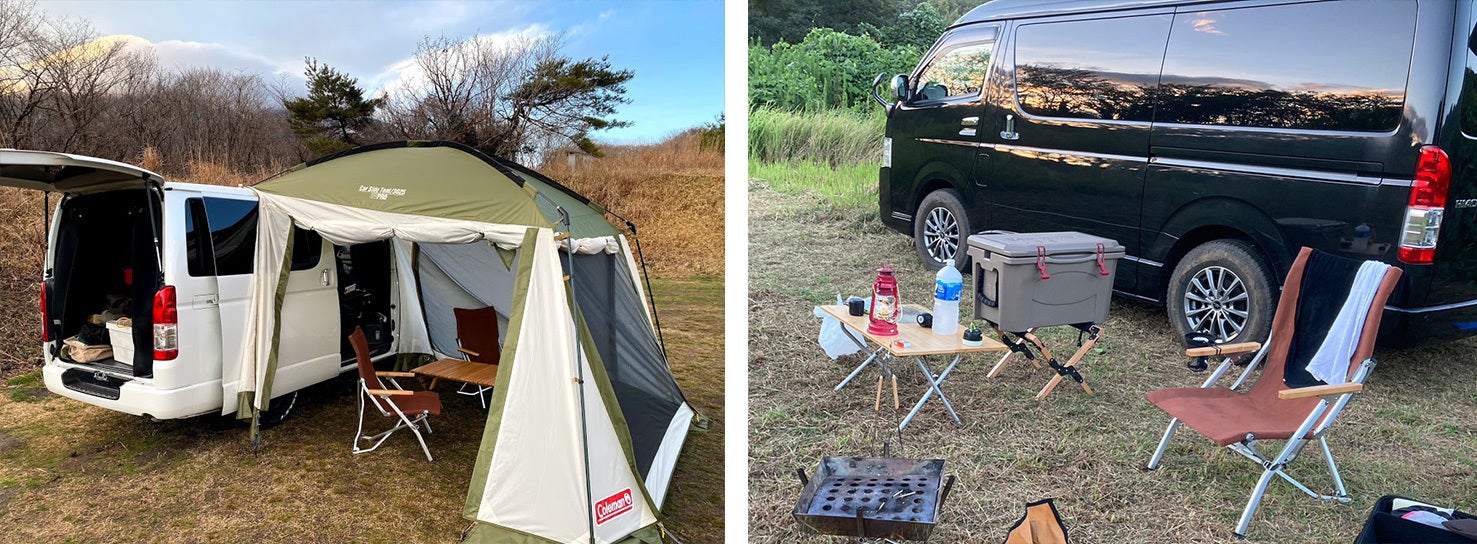 キャンプ道具は結構な量になりますし、それを一旦車から降ろして別の場所に運ぶというのはとても大変です。貴重品の管理や万が一雨が降ってくることなども考えると自分の車が側にあるというのはとても安心できます。