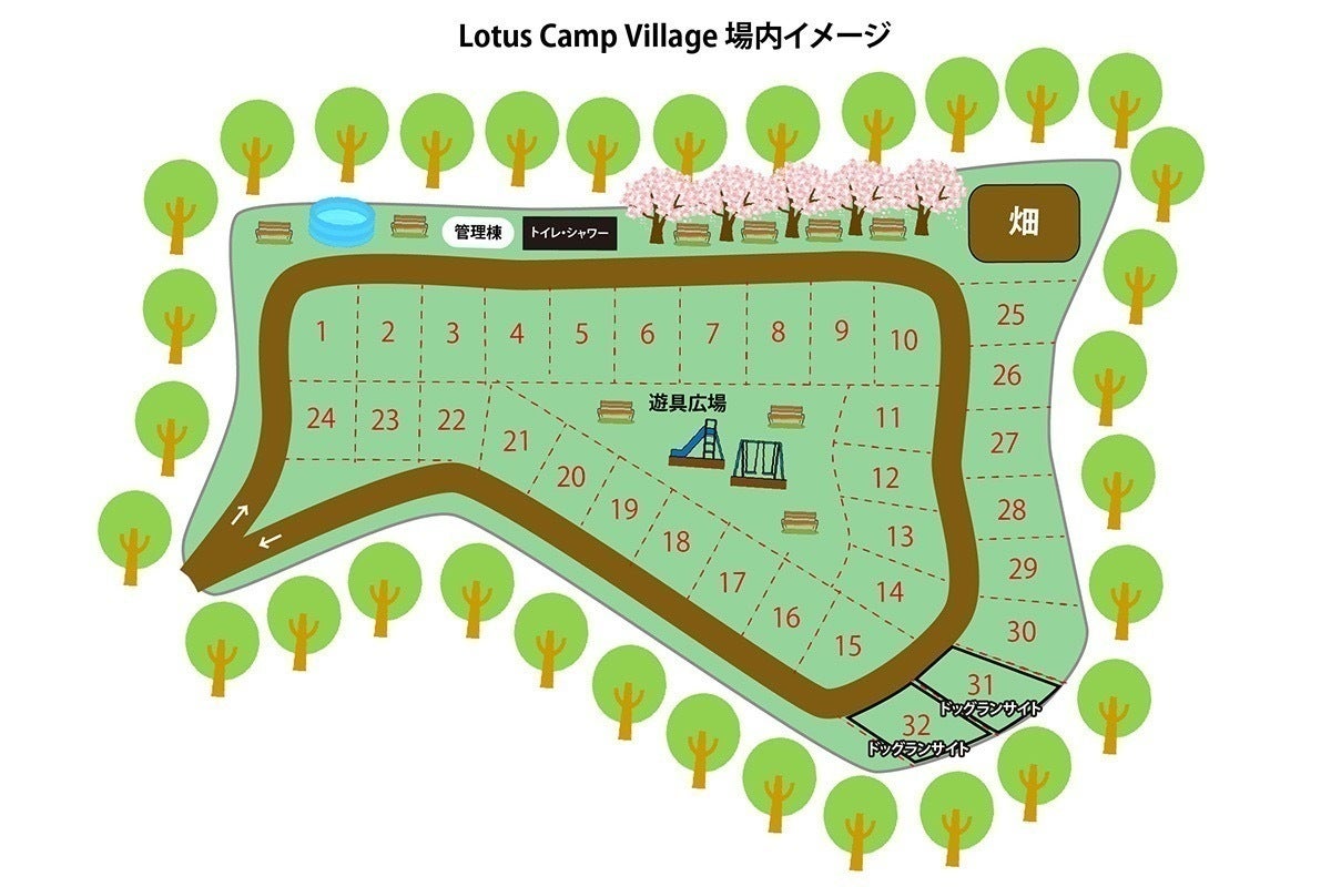 そこで当キャンプ場ではキャンプサイトで囲むようにして目の届くエリアに遊具広場を設置予定です。またソロキャンパーのために遊具広場から少し離れたエリアやサイトを柵で囲ったドッグランサイトもございますのでファミリーからソロ、ペット連れまで幅広いキャンパーの皆さんにお楽しみいただけます。