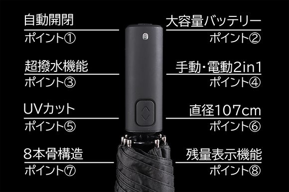 「Alter」は手が塞がっているときでも、片手でボタンを押すだけで自動開閉ができ、傘の開け閉めが便利になります。