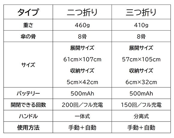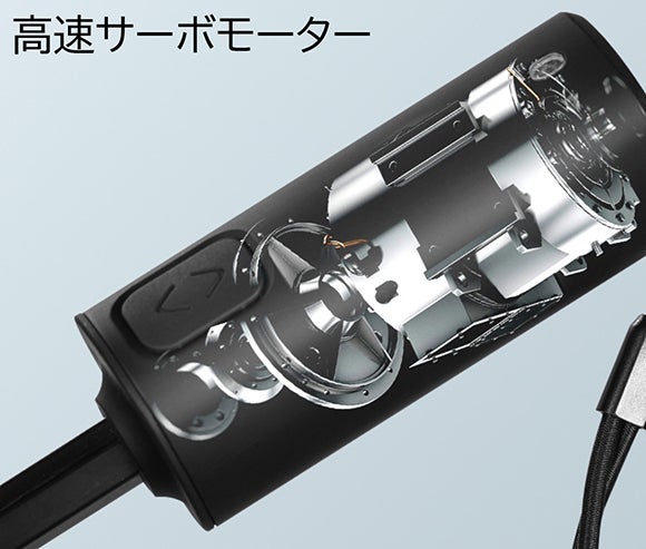 「Alter」は従来型が使った強力なバネの代わりに、動力源をモーターにして、展開と収納の動力が針金で伝わるため、収める途中で手元が急に飛び出したりすることがなく、より安全に使えます。