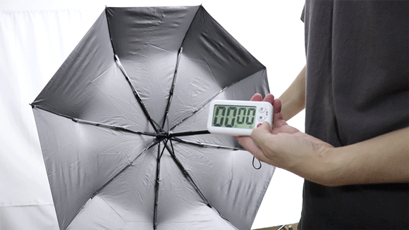 傘の内側に紫外線防止効果のある高密度のコーティングが施され、出かける時に日傘として使用可能。