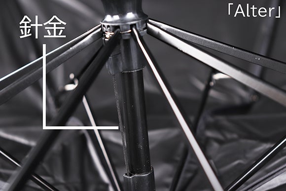 「Alter」は紛失防止のため、露先と傘骨を一体化させたデザインを採用します。