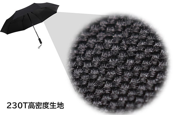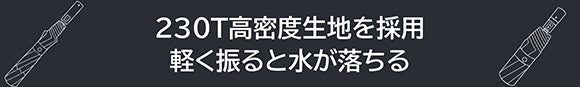 「Alter」は撥水性に優れた230T高密度生地を採用したため、雨が傘に落ちた瞬間に水玉になって滑り落ち、表面に付着しにくくなります。