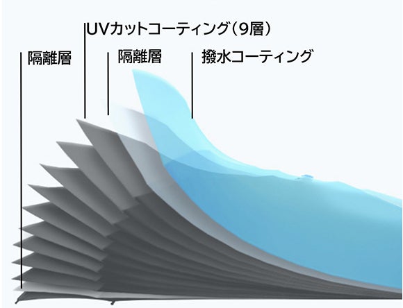 ■超撥水機能付き、軽く振るだけで、瞬時に雨水が落ちる。