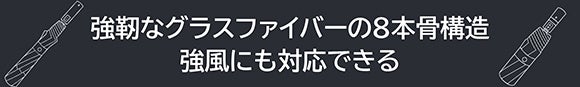 ■強風に対応できる強靭なグラスファイバーの8本骨構造