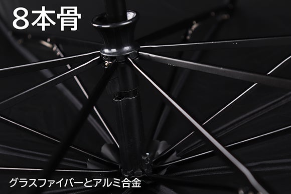 8本骨はすべてグラスファイバーとアルミ合金でできているので、強風にも負けないほどの丈夫さをもっています。