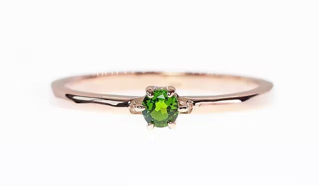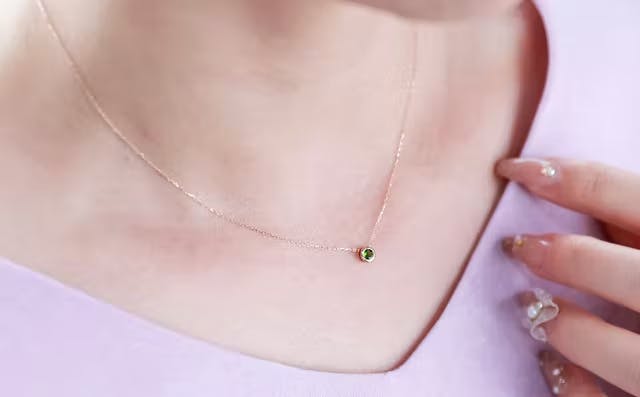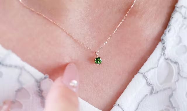クロムダイオプサイトは年代問わず身につけられる宝石で、重ね付けはもちろん、そのシンプルな美しさがシーンを選びません。