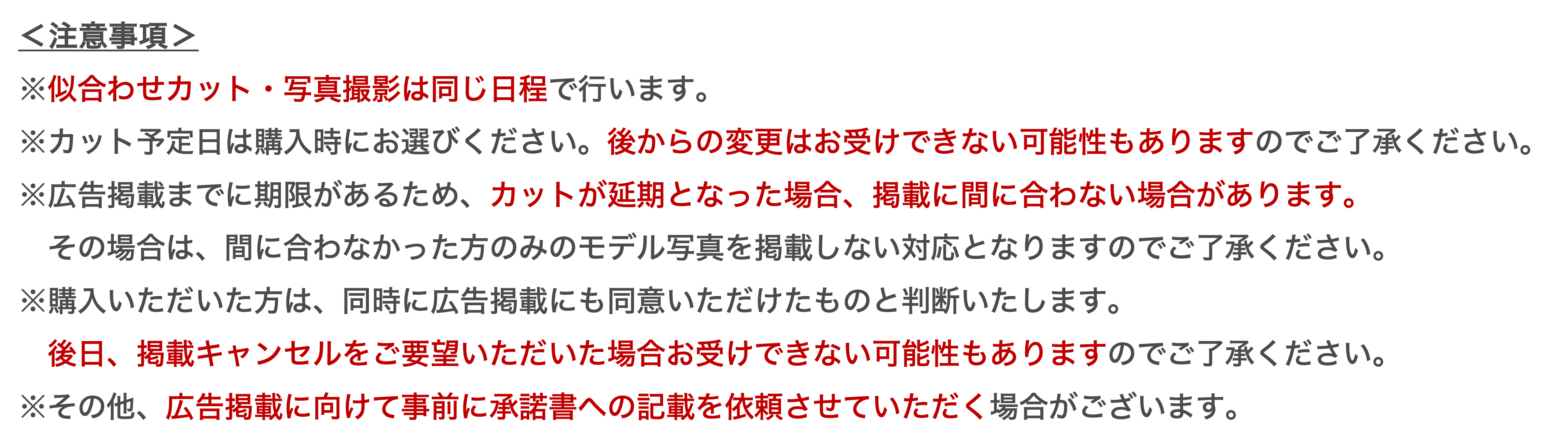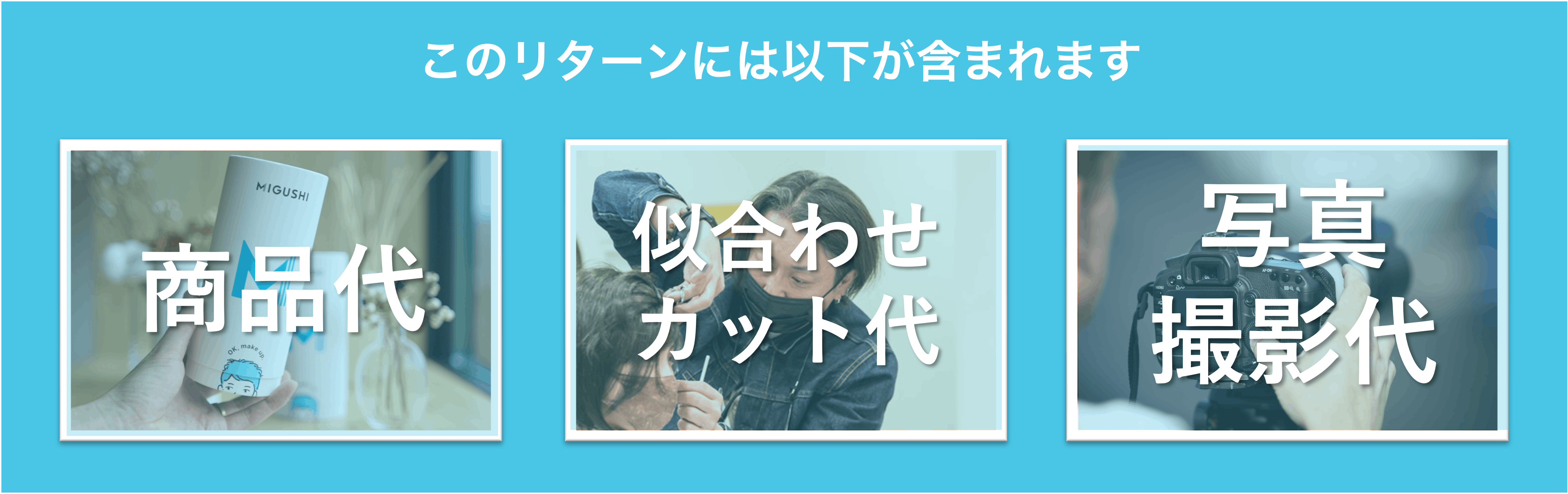 こちらのリターンを購入いただいた方には、「商品代」「似合わせカット代」「写真撮影代」が全て含まれています。