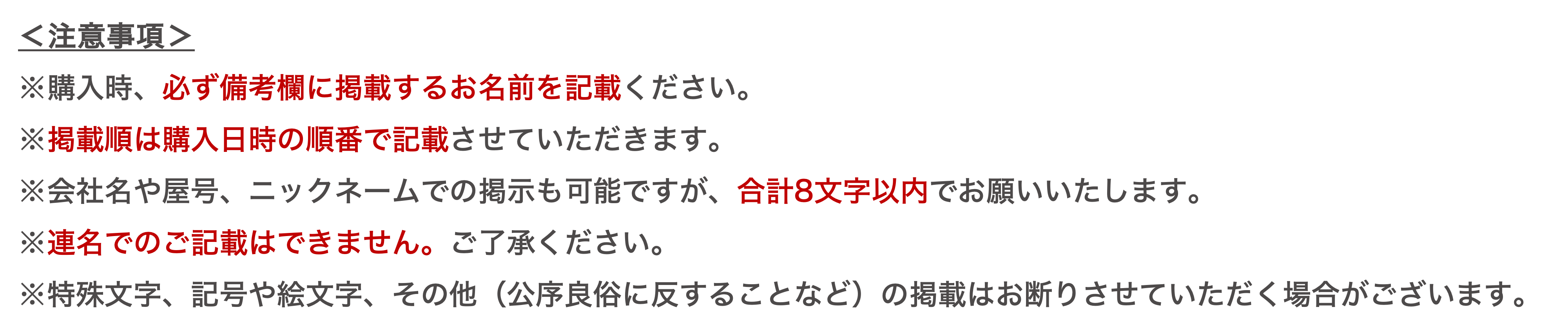 【名前枠】サポーターとして「お名前(ニックネーム可)」を掲載