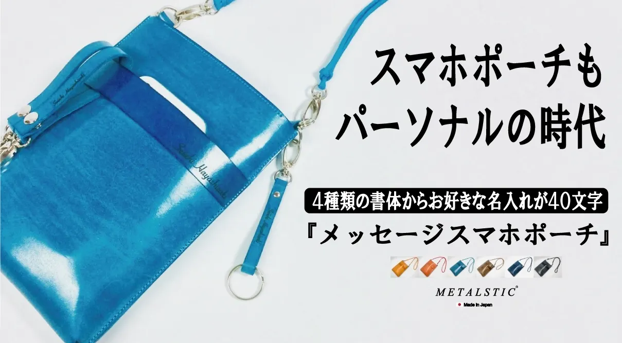 皮革製品でレーザー加工機を使用した名入れは、あまり見掛けませんが今後主流になるかも知れません。今回期間限定プロジェクトにて「METALSTIC」立上げ10周年の感謝を込めて、皆様にお届けする Shiza第六弾『メッセージスマホポーチ』